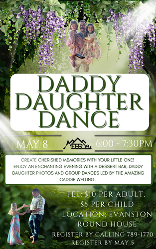 Name: Daddy Daughter Dance by Evanston Parks & RecDate: May 8, 2026Time: 6:00 PM - 7:30 PM MDTWebsite: http://evanstonparksandrec.org