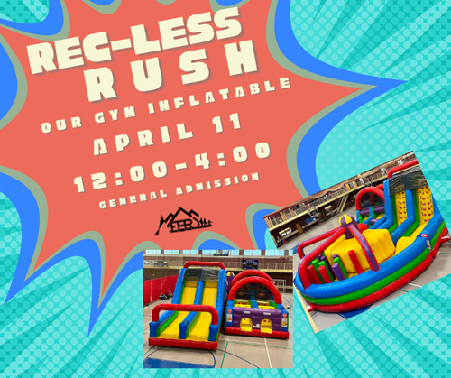 Name: Rec-Less Rush Gym InflatableDate: April 11, 2026Time: 12:00 PM - 4:00 PM MDTWebsite: http://evanstonparksandrec.org