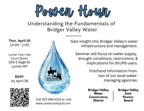 Gain insight into Bridger Valley's water infrastructure and management. Seminar will focus on water supply, drought conditions, restrictions, & implications for BVJPB users.