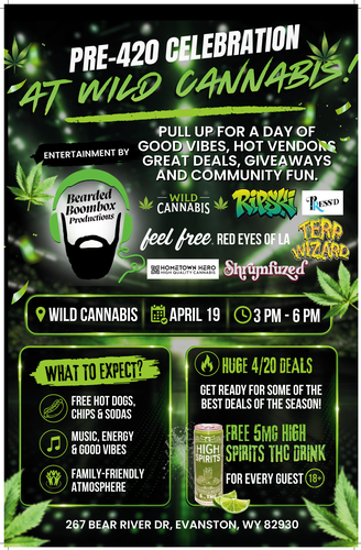 Name: Wild Cannabis' Pre-420 CelebrationDate: April 19, 2026Time: 3:00 PM - 6:00 PM MDT