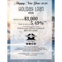 Members can borrow up to $3,000 with a rate as low as 5.49% APR. This loan is based on approved credit (OAC), effective 11/1/2025 - 1/31/2026.